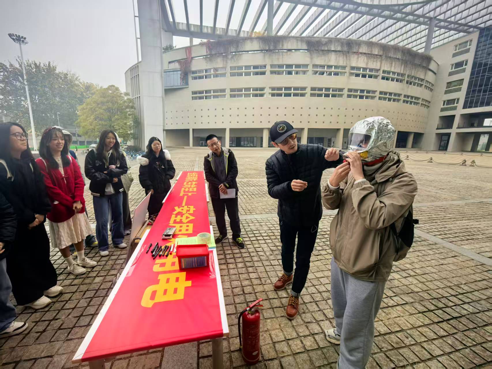 活动现场,保卫工作部老师结合校园火灾典型案例,围绕火灾预防、初期火灾扑救、灭火器及防毒面具正确使用等知识展开详细讲解,通过通俗易懂的语言拆解消防常识,同时针对宿舍用电安全、秋冬季节火灾防控重点等学生日常接触场景进行重点强调。现场同学积极互动,亲身参与消防器材的体验。