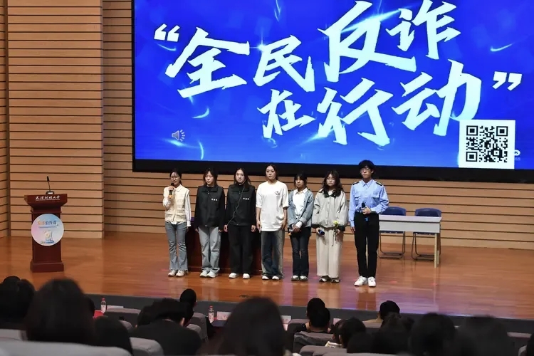 本次活动以金融消费者权益保护教育宣传为核心,精心设计了反诈文艺表演、公开课学习等丰富环节,兼顾专业性与趣味性,让反诈知识入脑入心。我校党委常委、副校长李新涛代表本次活动承办单位致欢迎词,他指出,习近平总书记多次对打击治理电信网络诈骗犯罪工作作出重要批示,在刚刚闭幕的全国两会上,最高法工作报告进一步明确了对电信网络诈骗犯罪始终坚持“出重拳、下重手”。高校学生是诈骗分子重点侵害目标,守护学生财产安全、筑牢校园反诈防线,一直是学校与公安机关的共同责任。长期以来,学校高度重视反诈工作,坚持高位推动,把反诈工作列为校园安全重点任务,主要领导亲自部署,定期召开专题研判会,同时通过多种形式常态化宣传,持续构建“校警协同、全员参与”的防控体系。希望同学们以此次活动为契机,时刻保持警惕、筑牢思想防线,也期待校警继续深化联动、创新宣传形式,让反诈之风吹遍校园,为学生健康成长保驾护航。